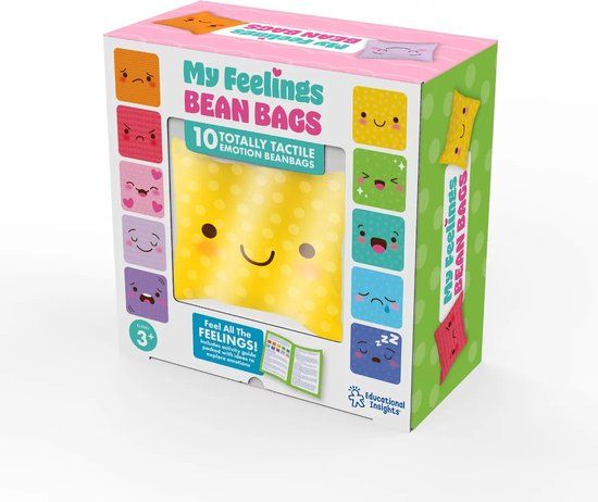 Help jonge kinderen hun gevoelens en emoties te identificeren en te uiten met deze set van 10 tactiele pittenzakken. Elke pittenzak heeft een bedrukte emotie afbeelding: blij, verdrietig, boos, verrast, geliefd, bang, vredig, opgewonden, slaperig en teleurgesteld, in een kleur en textuur die uniek is voor die emotie. De pittenzakken kunnen worden opgeborgen in de meegeleverde draagtas met trekkoord en de set wordt geleverd met een activiteitengids voor ouders/leraren.