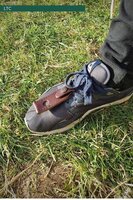 Wij leunen altijd op onze boog. In het vuil is geen optie, dus op de schoen, langzaam maken we de schoen stuk.... Dit handige ding lost dat op. Klik m vast over de onderste veter en het werkt!