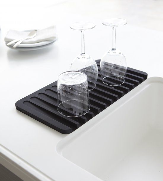 Deze slimme afdruipmat van Yamazaki is schuin ontworpen, zodat overtollig water direct in de gootsteen stroomt. De tray is gemaakt van vochtbestendig, bacteriebestendig siliconen en is ook makkelijk op te bergen wanneer je hem niet gebruikt. Kan alleen of met een rek worden gebruikt.