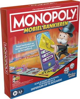 - GRATIS MONOPOLY-APP: Monopoly Mobiel bankieren-app is vereist om te spelen. Scan de QR-code in de gebruiksaanwijzing om te downloaden op een smartphone of tablet. (Apparaat niet inbegrepen. Gratis te downloaden - er kunnen tarieven voor dataverkeer en in-app aankopen van toepassing zijn)