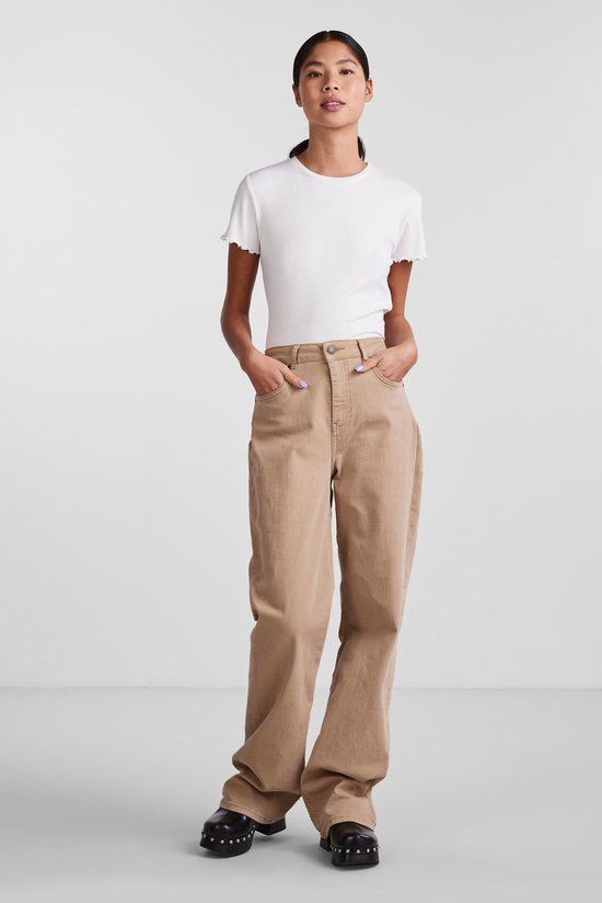 Geribd t-shirt van Pieces met ronde hals en korte mouwen. Lauw strijken max 110°c, Machinewas 30°c, Niet bleken, Niet in de droger, Niet stomen