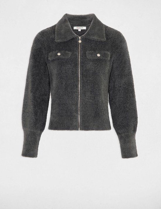 Dit Morgan De Toi vest in antracietgrijs combineert comfort met stijl. Het zachte, harige breisel voelt heerlijk aan en zorgt voor een luxe uitstraling. Het vest heeft een klassieke kraag, een rits aan de voorkant en twee decoratieve borstzakken met knoopdetail. Dankzij de mix van 61% polyamide en 39% polyester behoudt het vest zijn vorm en draagcomfort. Ideaal voor een casual-chique outfit, zowel overdag als ’s avonds.