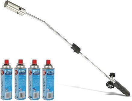 Onkruidbrander met Gasflessen - Regelbare gastoevoer - Inclusief 4 Gasflessen - Branders