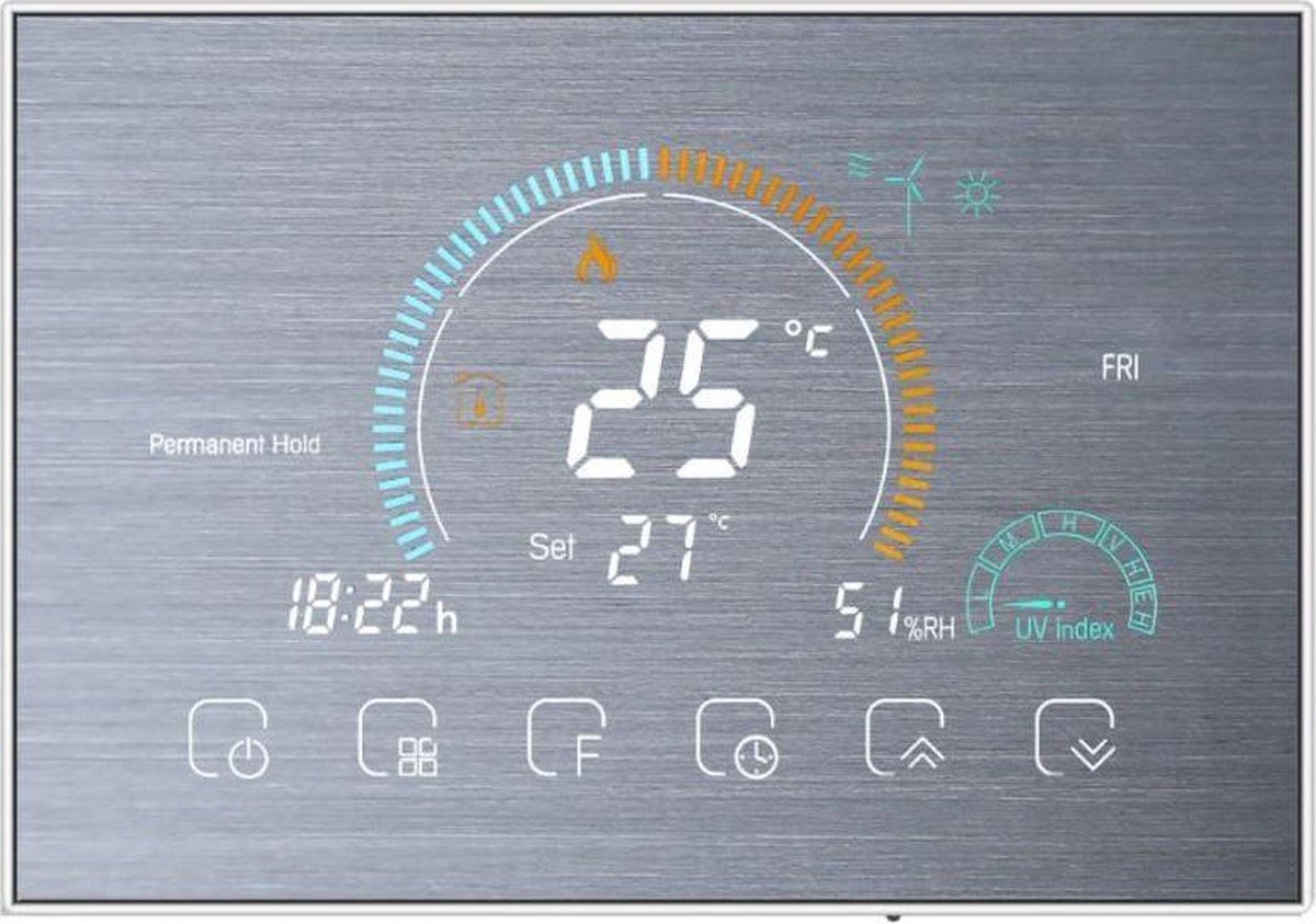 TechU™ Slimme Thermostaat Relax - Zilver - Wifi - Bediening met App, Google Assistant & Alexa - Electric Heating - Brandstofcellen