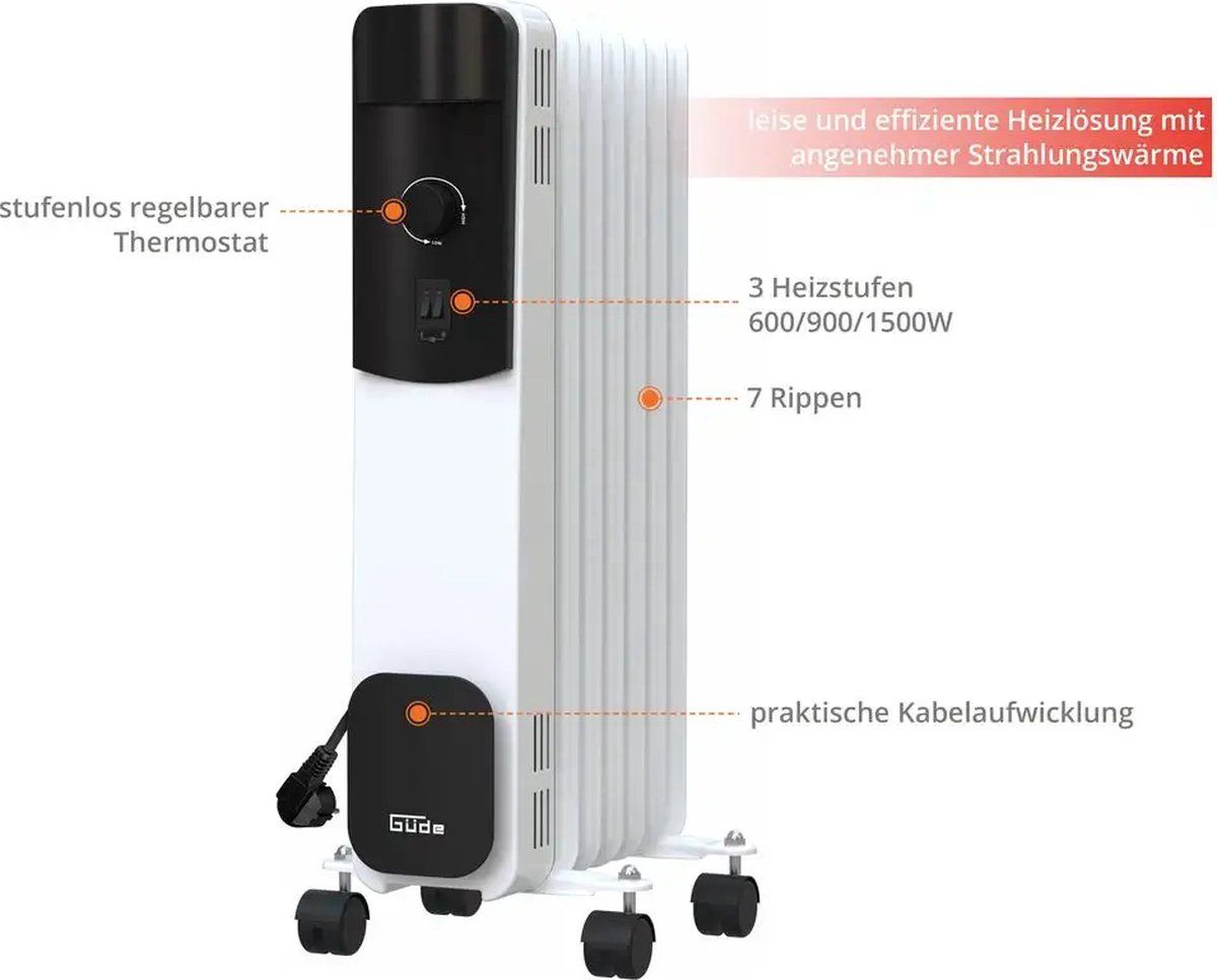 Borg Olieradiator 1500 watt met thermostaat - elektrische verwarming - wit - Brandstofcellen