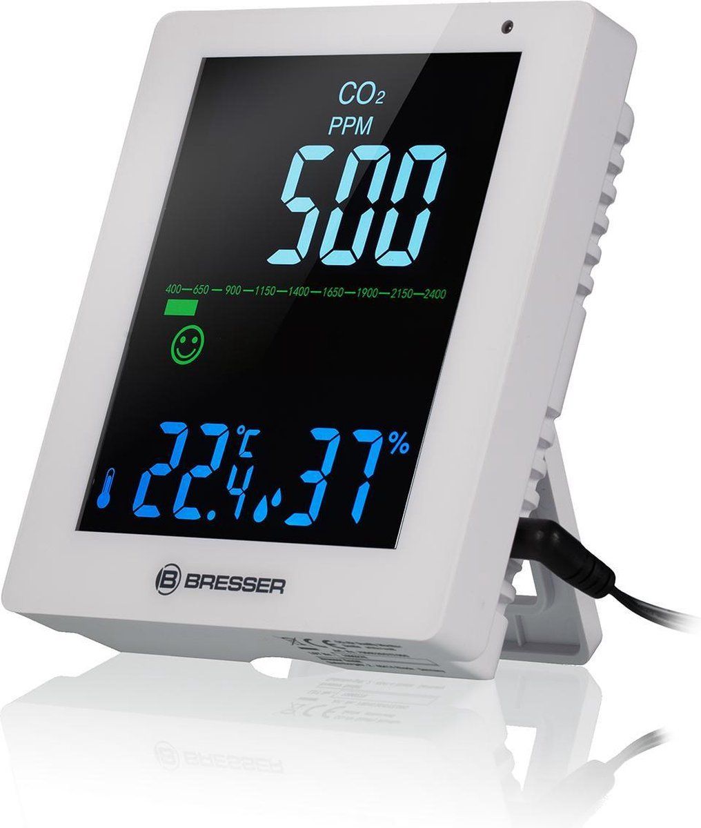 Bresser CO²-meter - Air Quality Monitor Smile - Wit - Met LED-display