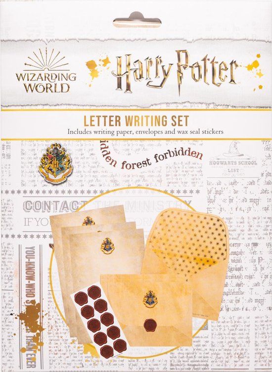 Stuur je vrienden hun langverwachte acceptatiebrieven van Hogwarts met deze Harry Potter Letter Writing Set. Schrijf je brieven aan vrienden om hen op de hoogte te brengen van je laatste avontuur en stuur ze via de post in deze charmante Hogwarts-enveloppen. De set wordt geleverd met 20 vellen schrijfpapier, 10 enveloppen met het Hogwarts-embleem op hun rug en 10 'wax seal' stickers om je brieven een authentiek tintje te geven. Dit is een prachtig geschenk voor fans van de Harry Potter-boeken en -films en maakt het schrijven van brieven leuker dan ooit.