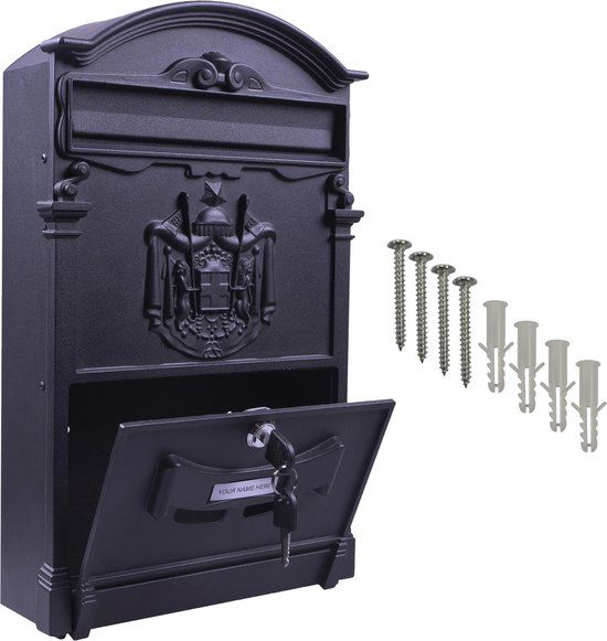 Perel Ibiza Wandbrievenbus - Zwart - 36x26x8cm - Met Naamplaatje & Slot