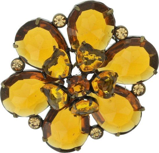 Bruine bloemen broche - Glas - Bruin - 4.5 cm - Vrouwen - Behave® Premium Classics