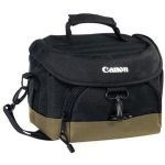 The Canon Gadget Bag 100EG is a water repellent bag that holds 1 SLR camera and 2-3 lenses with room for accessories. It has a divider system for secure storage and easy access.\n\n- Water repellent Nylon camera bag\n- Divider system for secure storage and easy access\n- Pockets\n-- Front zipper pouch\n-- Rear zippered pouch\n-- Zippered full-length mesh pouch inside top cover\n- Carried by shoulder strap or carrying handle
