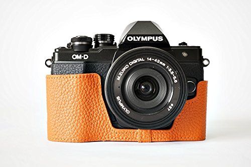 TP Handgemaakte Echt Lederen Halve Camera Case Camera Tas voor Olympus OM-D EM10 II - ORANJE - Camcorders