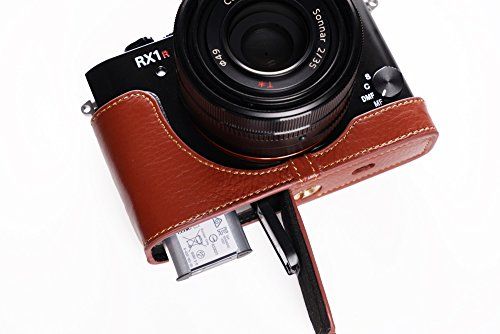 TP Handgemaakte Echt Lederen Half Camera Case Camera Tas voor Sony RX1R II Mark II M2 Bruin - Camcorders