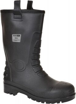 Een waterdicht alternatief voor de traditionele leren laars. Stalen neus en tussenzool, volledig waterdicht, „bont” gevoerd en met aantreklussen.