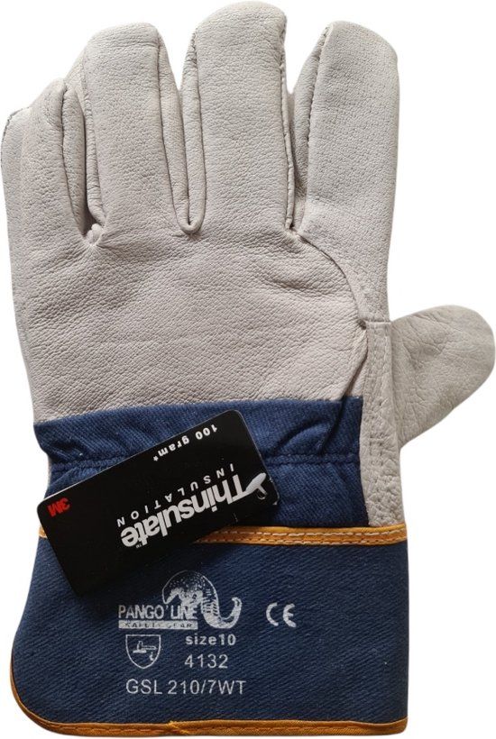 Pango'Line Lederen Werkhandschoenen - GSL210/7WT - Maat 10 - Wit/Blauw - 3 Paar - Chemisch bestendige veiligheidshandschoenen