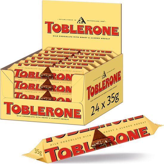 - 24 repen van Toblerone melkchocolade met honing en amandel nougat van elk 35g.