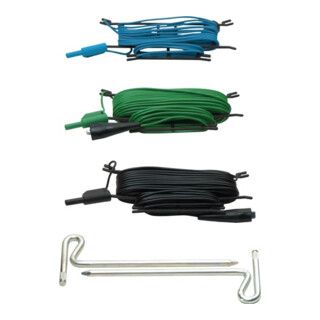 - Aardingsset voor aardingsmetingen via driedraadsmeetmethode, bestaande uit 2 aardingspikes en 3 meetsnoeren