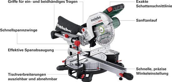 De Metabo 614216850 is een multicolor zaagmachine, ideaal voor allerlei zaagklussen. Met zijn compacte afmetingen van 50 x 50 x 28 cm en een gewicht van 12,8 kilogram, is deze zaagmachine gemakkelijk te hanteren. De krachtbron is ac_dc en de spanning bedraagt 18 volt. Deze zaagmachine wordt geleverd met een speciale sierset, waaronder een draadloze klassieke houtzaag, twee tafelverbreders, een maatbalk, een materiaalklem, gereedschap voor het wisselen van zaagbladen, een stofopvangzak en zonder batterij en oplader. Met de lithium-ionbatterijen, die niet zijn inbegrepen, kunt u tot wel 400 zaagsneden maken in naaldhout van 60 x 60 mm per acculading. Al met al is de Metabo 614216850 een krachtige en veelzijdige zaagmachine die zeker van pas zal komen bij al uw zaagklussen.