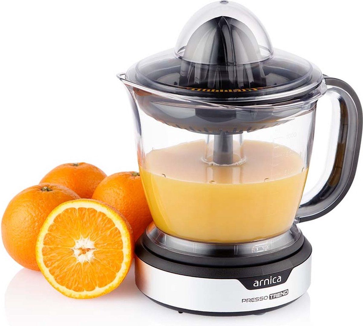 BEHOME Professionele elektrische citruspers 1,2 liter zwart en zilver met 2 kegels
