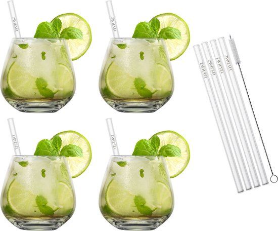 Schott Zwiesel Cocktailglazenset Vina - 4 delige set - met rietjes en borsteltje