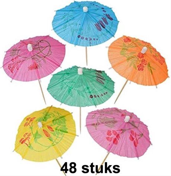CHPN Papieren Parapluutjes - 48 stuks - Gemengde Kleuren - Feestdecoratie - Cocktailprikkers