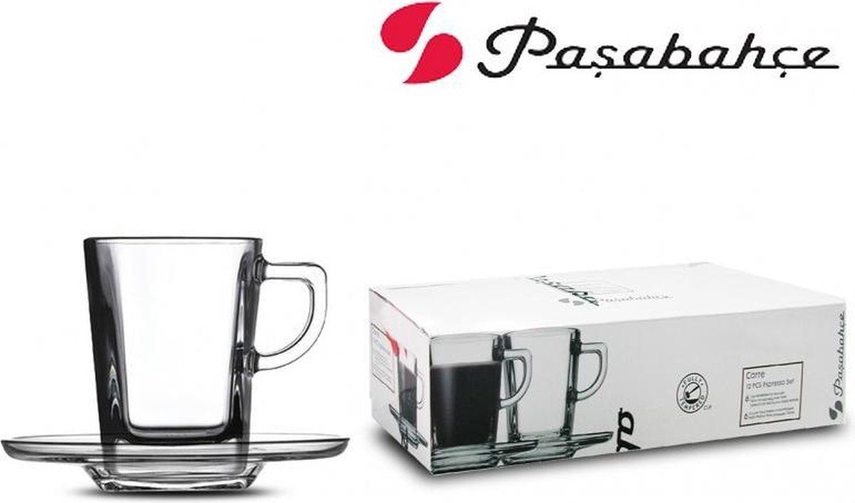 Pasabahce Carre - 6 Mini Espresso kopjes vierkant 72ml + 6 Schoteltjes - Set van 6 - Containers voor voedselopslag
