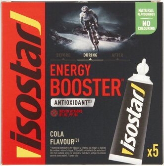 Koolhydraatrijke Energy Gel van Isostar met een heerlijke cola smaak. Voor een snelle boost van snelle koolhydraten en met toegevoegde vitamines. Perfect om te nuttigen voor of tijdens een inspanning.