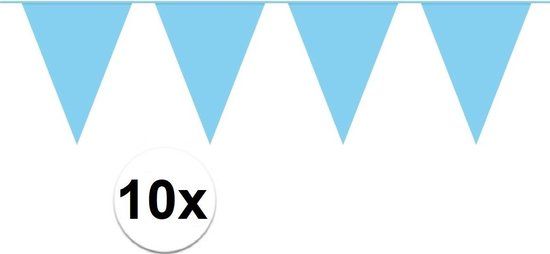 • 10 Licht blauwe vlaggenlijnen van 10 meter lang.