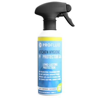 Periodieke toepassing voor een langwerkende, duurzame anti-vuilhechting, easy cleaning en mooie uitstraling voor alle keuken toepassingen zoals aanrechtbladen, tegels, spoelbak, kranen, koffiezetter, keukenkasten, handvatten, fornuis, afzuigkap, koelkast, afwasmachine e.d. Eerst reinigen met Kitchen PF Deep Cleaner & Protection 413. Toepasbaar op glanzende, matte of stroeve oppervlakken. Het product is 100% vriendelijk voor huid, milieu en materialen.