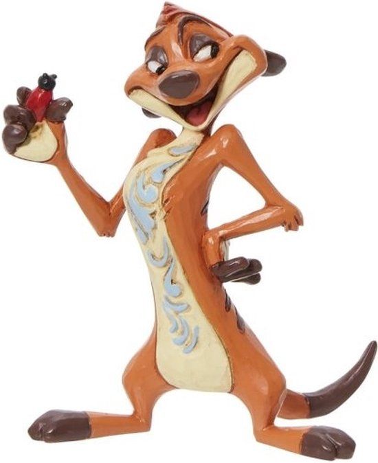 Timon Eating Bugs Mini. Fraai beeldje uit de Mini's-collectie van Disney Traditions by Jim Shore. Stokstaartje Timon uit Disney's Lion King staat op het punt een sappig insect te verorberen. Met de Disney Traditions-beeldjes haalt u een stukje Disney Magie in huis. Disney Traditions-beeldjes worden al jaren ontworpen de Amerikaanse kunstenaar Jim Shore. Hij is ook bekend van zijn Heartwood Creek collectie. Zijn creaties lijken uit hout gesneden, maar worden van Poly Resin vervaardigd en zijn stuk voor stuk handbeschilderd. De warme, nostalgische uitstraling van de beeldjes zorgt voor een grote schare liefhebbers en verzamelaars uit alle lagen van de bevolking en over de hele wereld. De Disney-creaties van Jim Shore zijn gelicenseerd en worden geproduceerd door Enesco.