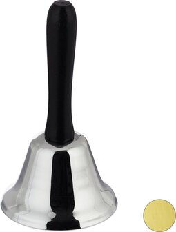 Relaxdays Tafelbel - Handbel - Schoolbel - Zilver - Houten Handvat