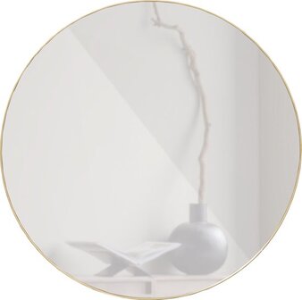 Simpele, industriële ronde spiegel IJzeren frame met goudkleurige coatingVoor in de hal, woonkamer of slaapkamerØ80 cmDeze royale ronde spiegel Doutzen komt uit de collectie van het Nederlandse merk WOOOD. Doutzen geeft een ruimtelijk effect in het interieur. De spiegel heeft een HRP sheet metal rand [hot rolled sheet metal] en is slijtvast. De stalen rand heeft een matte, goudkleurige afwerking. De spiegel heeft een doorsnede van 80 cm, de rand is 4 mm dik en 5 cm diep. De spiegel weegt 9,5 kg. Het spiegelglas voldoet aan de Europese standaard.De spiegelrand is gepoedercoat, waardoor ook geschikt voor in de badkamer. Er zit een metalenstrip achter de spiegel, voorzien van 2 gaten waaraan de spiegel opgehangen kan worden. Schroeven worden niet bijgeleverd.