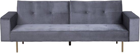 Beliani VISNES Slaapbank 3-zits - Grijs Fluweel