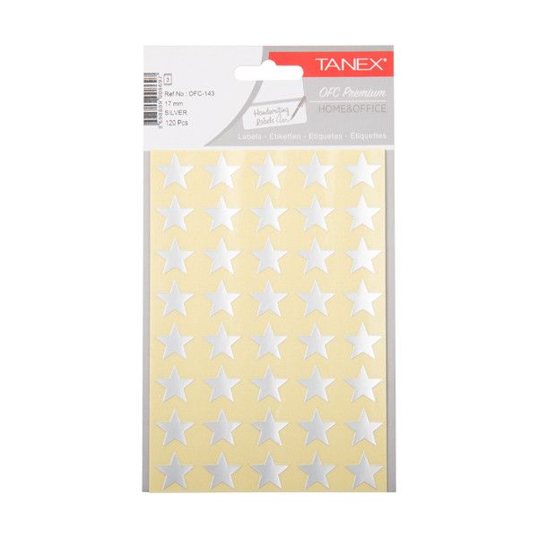 De kleine Tanex Stars stickers zilver zijn ideaal voor kinderen en creatievelingen. Gebruik de vrolijke stervormige stickers om onder andere schoolspullen, wenskaarten, een agenda of bullet journal te versieren. Deze verpakking bevat 3 velletjes met ieder 40 zilverkleurige stickers. - Tanex Stars stickers klein zilver (3 x 40 stuks)
