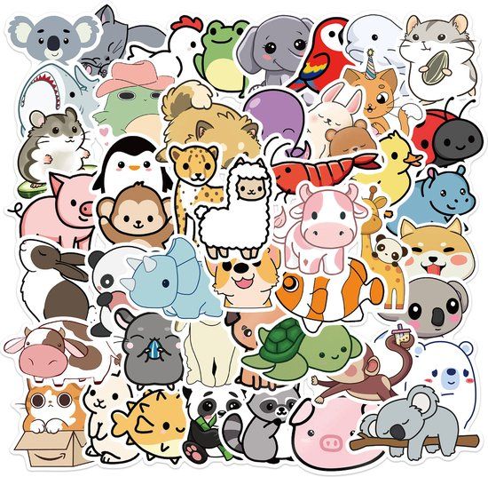 Schattige Dieren Stickers - 50 Stuks - Vinyl - Laptop - Kinderen & Volwassenen - Decoratieve 3D-stickers