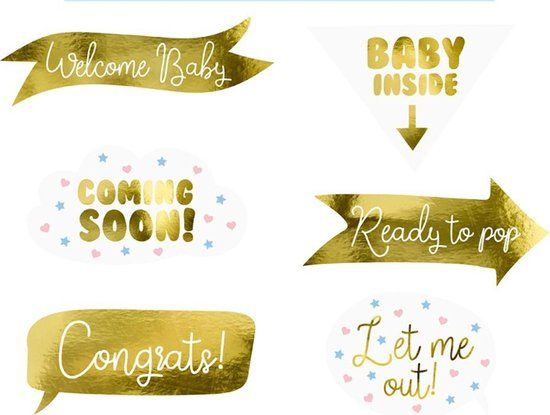 Een babyshower is een bijzonder moment en het is wel zo leuk om daar mooie herinneringen aan over te houden. Mooie foto’s bijvoorbeeld. Deze gouden props zijn zeer geschikt om de leukste foto's te maken! Zo zorg