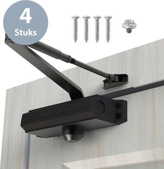 Hydraulische Deurdranger (4 Stuks) - Snelheid Instelbaar - Deursluiter voor Binnen - 35 t/m 60 kg - Zwart