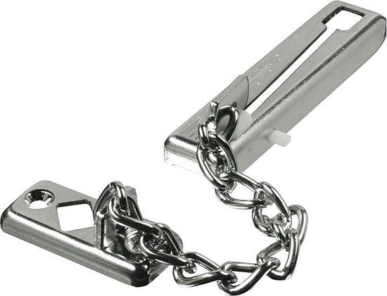 Met deze deurketting kunt u de deur op een kier zetten, zodat u veilig uit uw huis of flatdeur kunt kijken. Op die manier kunt u voorkomen dat ongenode gasten binnenkomen. De ketting is gemaakt van gelast staal en beschermd tegen onvoorzichtige kinderhanden dankzij een verende rail.