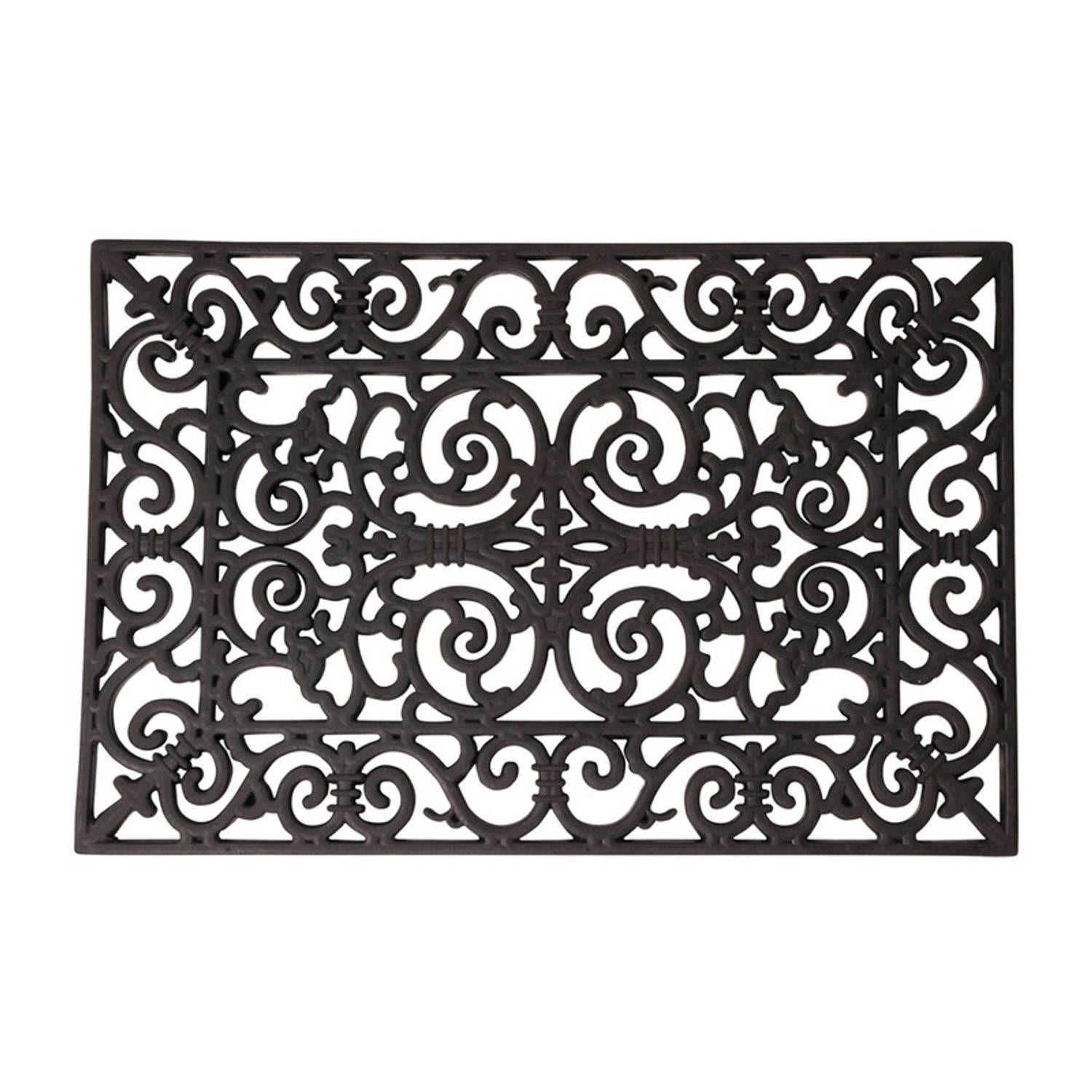 Esschert Design Rubberen schoonloopmat zwart klassieke print 70 x 40 cm - Deurmatten schoonloopmatten