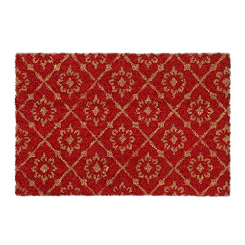 Relaxdays Deurmat floraal - 40 x 60 cm - kokos - rood/natuur - Deurmatten