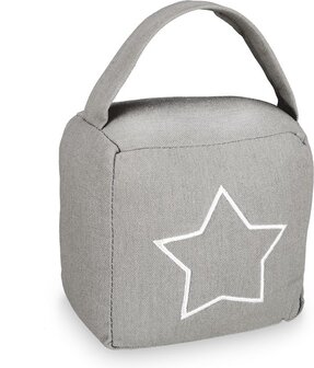 Deze deurstopper is ideaal om te voorkomen dat de deuren in huis vanzelf dichtslaan. Door de vulling van zand staat hij stabiel en veilig op de grond. Door zijn hoogte is de deurstop ook geschikt voor hoge deuren, zoals balkon- als ook terrasdeuren, of ramen te gebruiken. De vierkante deurstop van stof onderscheidt zich door zijn moderne design met een decoratieve ster aan de voorkant. De deurstopper moet niet aan de grond of de muur vastgemaakt worden en kan daardoor met zijn handige handvat opgetild en flexibel geplaatst worden.