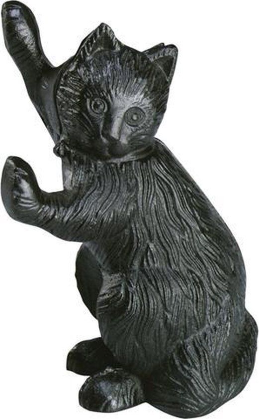 Zwarte gietijzeren deurstop krabbende kat.