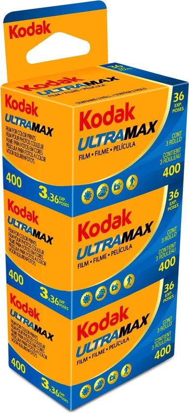 Kodak Ultra Max kleinbeeld kleurenfilm van 400 ASA met 36 opnames, per 3 stuks verpakt. De ideale film voor geweldige foto's onder alle omstandigheden en is de logische keuze voor elke situatie: binnen, buiten, flits en actie.