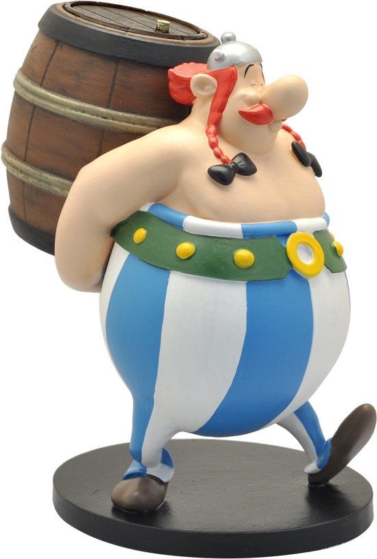 Obelix draagt zijn ton. Gemaakt van kunsthars en 19 cm hoog. Uit de Collectoys serie.