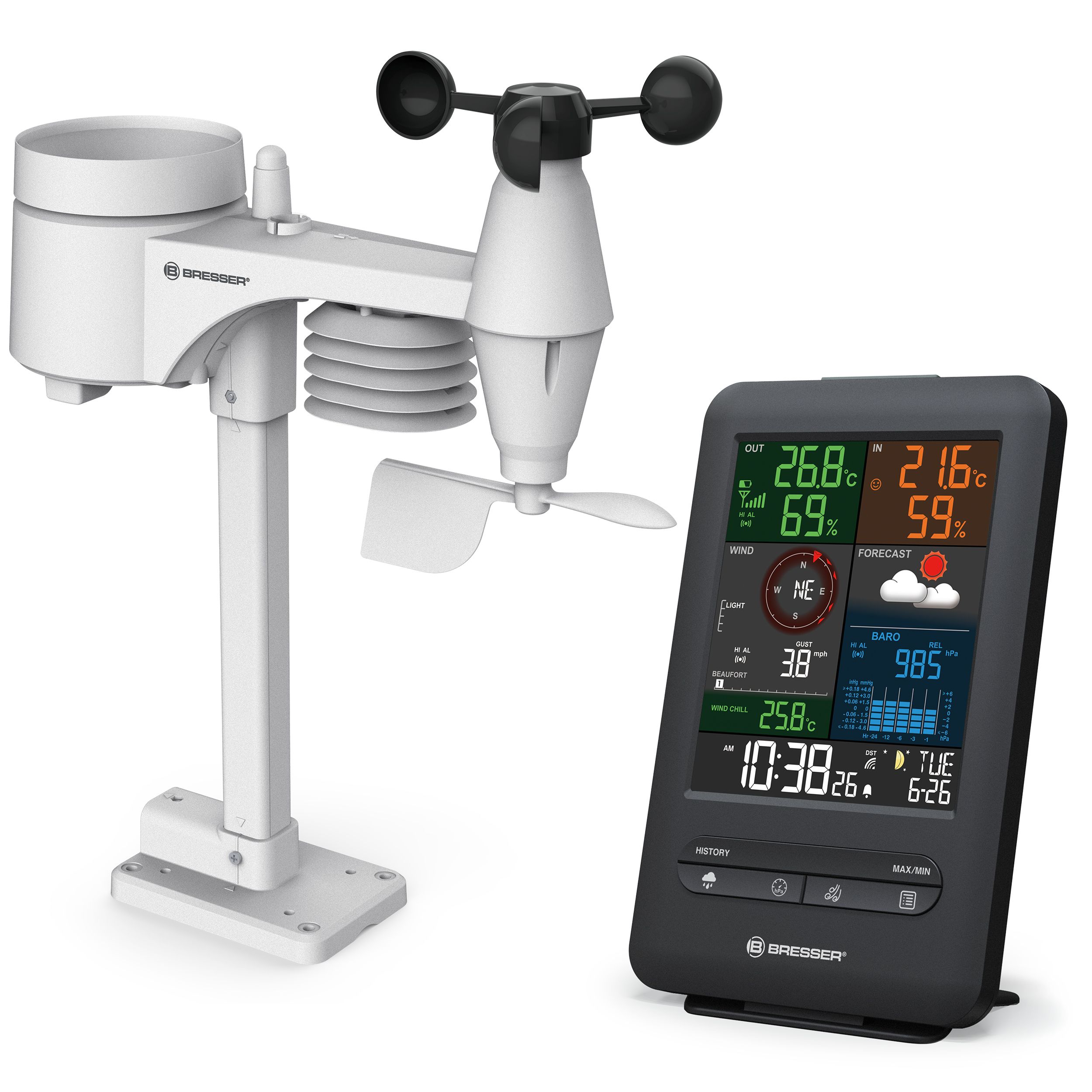 Bresser Optics 7002525 Digitale Weerstation | Batterij/Accu | Kleurenscherm - Digitale barometers