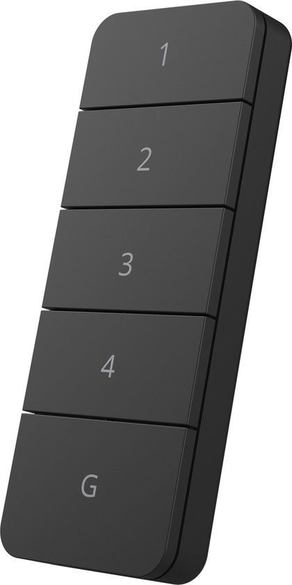De schakelaar beschikt over vier afzonderlijk te bedienen kanalen en een groeptoets om meerdere lampen en apparaten in één keer te schakelen.