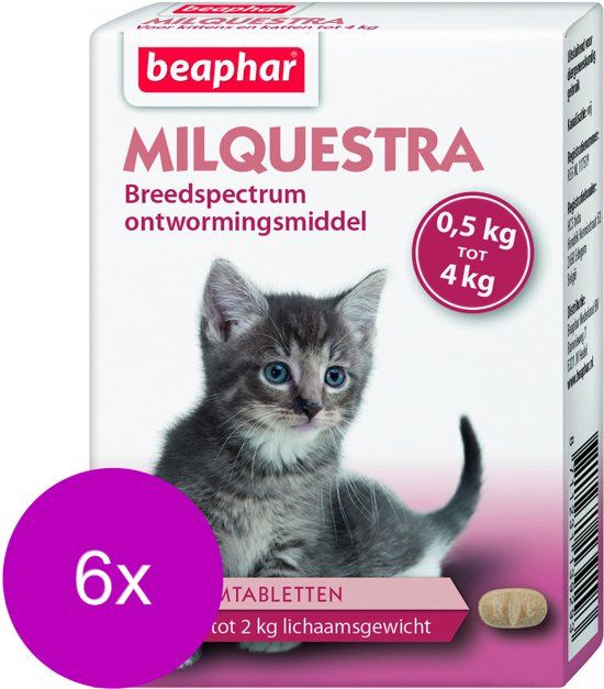 BEAPHAR Milquestra Kitten - Anti wormenmiddel - 6 x 2 tab 0.5 Tot 4 Kg