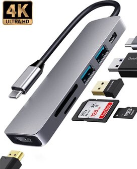De slimme hub is speciaal ontworpen met maar liefst 6 verschillende poorten, zijnde een HDMI, USB 3.0, USB 2.0, TF/SD kaartlezer en een PD charging. Dit zorgt ervoor dat het uitermate geschikt is voor zowel laptops, tablets en Chromebooks. Ook biedt het de mogelijkheid om meerdere apparaten tegelijkertijd van stroom te voorzien dankzij de PD charging poort. Tevens kun je met de TF/SD kaartlezers memory kaarten uitlezen.