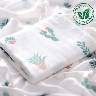 BoefieBoef Grote XL Hydrofiele Doek - Hippe Cactus - Bamboe & Biologisch Katoen - Doorspoelbare babydoekjes