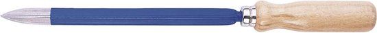 - Driehoekige holle profielkling van chroom-vanadiumstaal, houten handvat, gelakt.