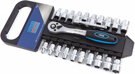 1 stuk(s) (25)5/2/2 (15)0 mm (14)25/1 (14)3 mm (1/4) en 12 (14)5 mm (1/2) · Dopsleutelinzetten van 4 - 34 mm · Bougie-inzetten 16 en 21 mm · Schroefinzetten met vierkantsaandrijving voor schroeven met platte kop (14)